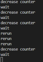예상한대로 처음 2개의 thread는 wait 상태로 넘어갔다가 깨어나고 마지막 thread는 카운트가 0인 상태에서 wait를 호출했기 때문에 바로 rerun이 출력되었다. 여기서 주의할 점이 있는데 latch는 카운트의 개수를 reset할 수 없다는 것이다. 이미 latch의 카운트가 0인데 count_down()을 한 번 더 호출한다면 0이었던 카운트가 -1(음수)이 되고 그 이후부터는 block이 된 쓰레드들이 다시 깨어날 수가 없다.